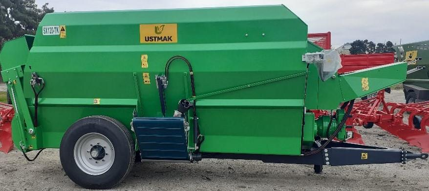 The 12 cubic meter feed mixer and distributor is designed for medium to large-scale livestock farms. It allows for efficient mixing and distribution of various feed components such as silage, hay, straw, corn, and concentrate feeds. This machine ensures a homogeneous mix to improve animal nutrition and feed efficiency.